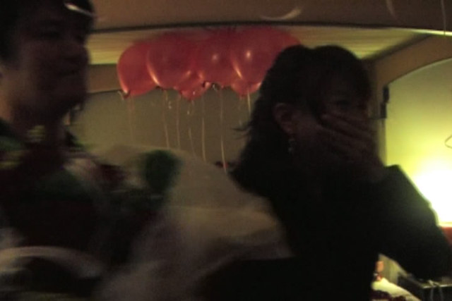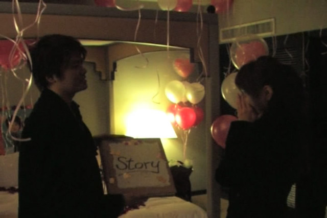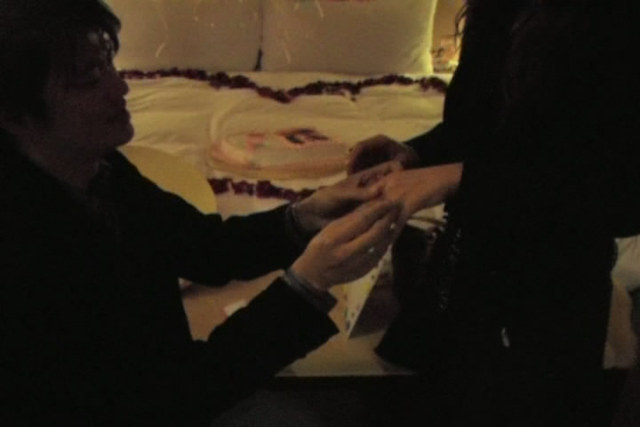 男友說,今天是個很特別的日子,我請了一些人來.... 。家嫿一轉頭,看見自己住在彰化和台中的好友們,居然出現在...這裡? 明明昨天才通過電話,她們還說自己不在台北,沒辦法替她過生日啊.... 感動的淚水滾滾而下,她們每個人都拿了一束玫瑰花和一張卡片,依序唸出了她們的祝福,而家嫿,這時終於聽到背景音樂了 " 今.天.妳.要.嫁.給.我....."。