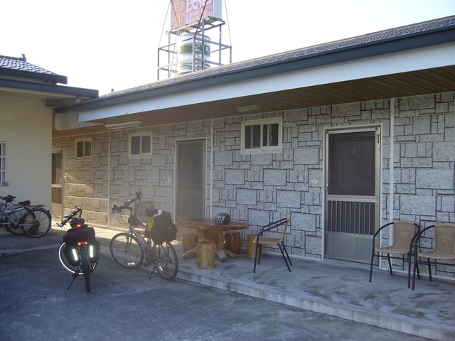 大約四點,我們抵達了大武,卻發現找不到旅社,只好再往前騎一段到尚武碰碰運氣。結果雖然更荒涼,但是總有一間旅館,即使看起來有點老 舊 破,不過,旅舍旁邊有一間7-11,一間早餐店,對面還有賣熱炒,所以對於單車環島來說,一百分。